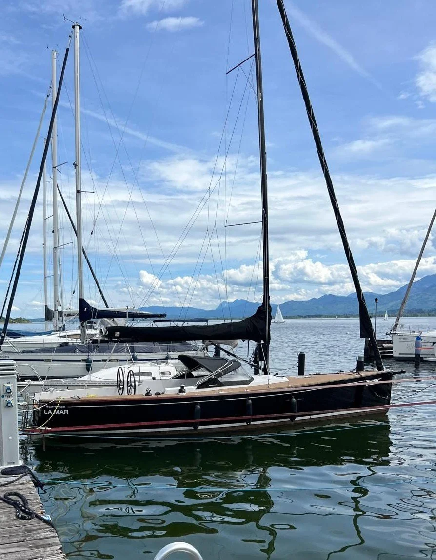 First installed on a Saffier 33 on Lake Chiemsee, Bavaria, Germany, in 2026, the work enters the landscape as the first object of its kind. The sail carries an image whose visual language evokes the Baltic Sea, relocating a northern motif into the landscape of southern Germany, introducing a visual displacement between image and place.